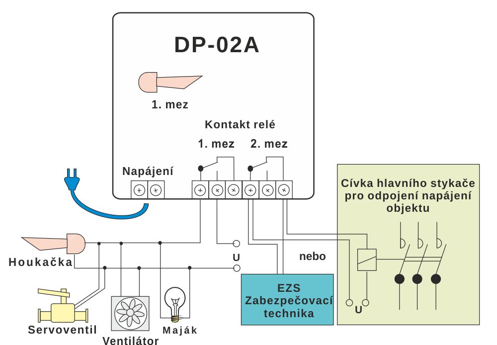 • DP-02A 2R 230VAC  - dvě výstupní relé s mechanickými kontakty, 230VAC
